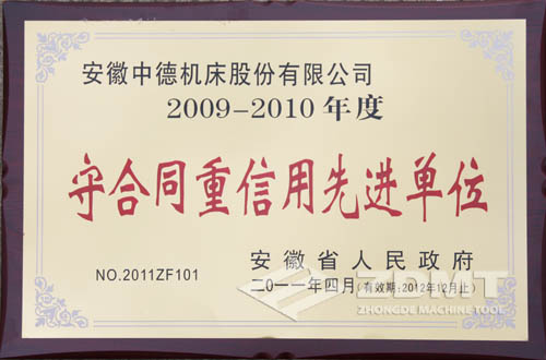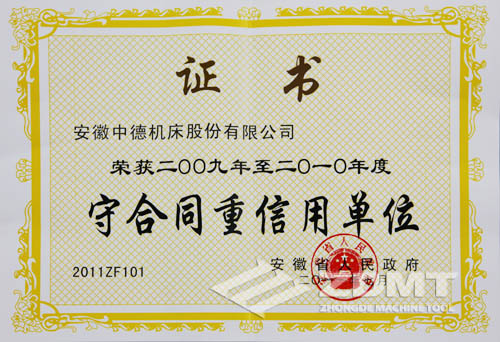 這也是我公司第三次獲得省政府授予的“守合同重信用先進(jìn)單位”稱號,公司不斷發(fā)揚“守合同、重信用”的良好傳統(tǒng),不斷探索、潛心經(jīng)營,逐漸建立、健全了一套適合市場規(guī)律和行業(yè)、企業(yè)自身特點的合同管理機制,強化了合同的管理,確保了合同的履行,呈現(xiàn)出合格率100%,優(yōu)良率85%以上,履約率達(dá)100%的喜人景象,取得經(jīng)濟(jì)效益和社會效益的雙豐收,贏得了社會各界的廣泛認(rèn)可,增強了社會大眾對“中德機床”品牌的認(rèn)知度,加速了品牌傳播、提升了品牌知名度,樹立了中德機床公司良好的社會形象。